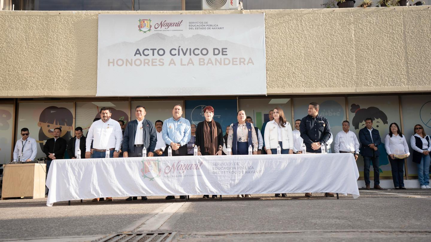 Se llevó a cabo el primer acto cívico de Honores a la Bandera del año, a cargo del Departamento de Educación Física y la Unidad de Normatividad de los Servicios de Educación Pública del Estado de Nayarit. Esta ceremonia cívica reafirmó los valores de identidad, respeto y compromiso con los símbolos nacionales dentro de la comunidad educativa.