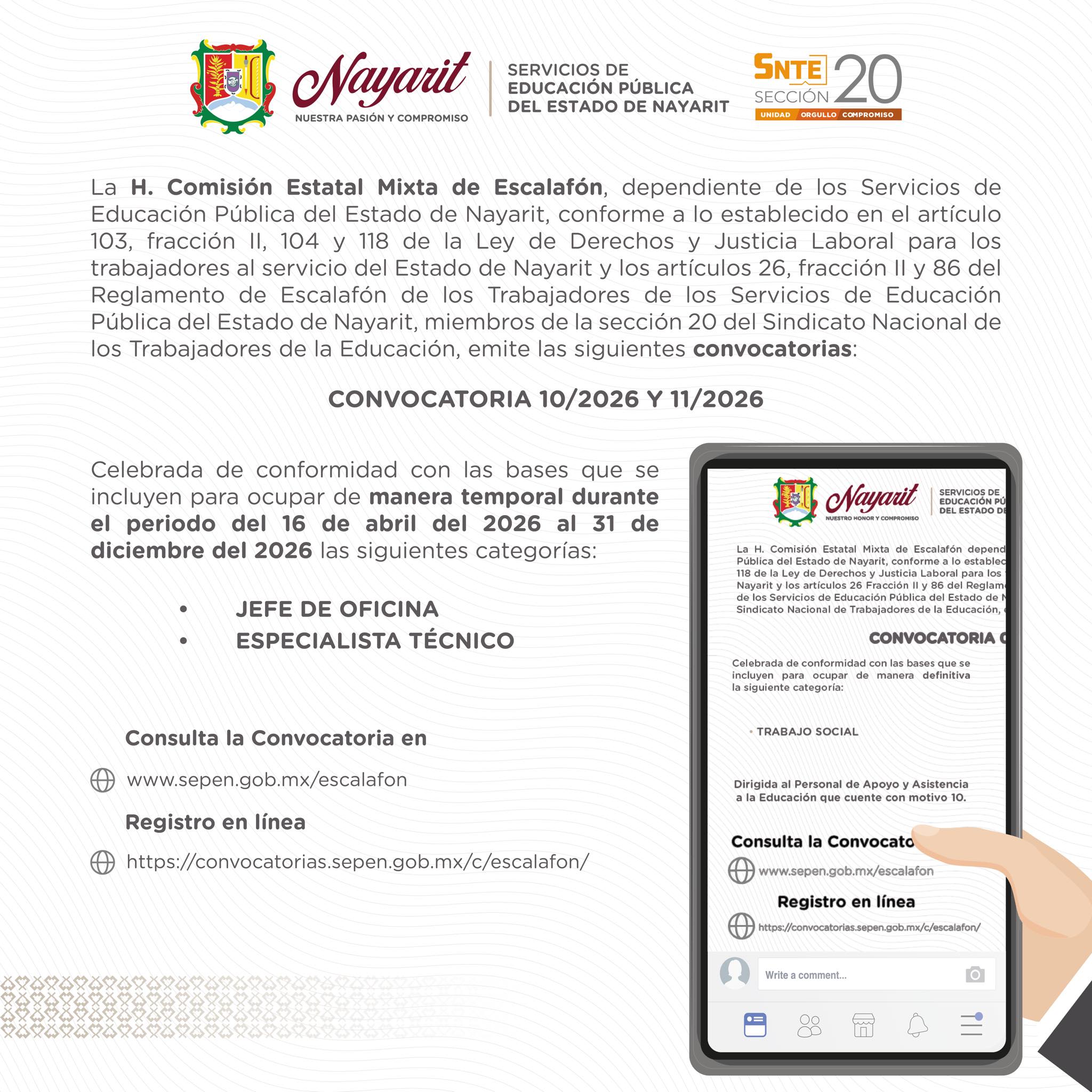 Consulta las convocatorias temporales: www.sepen.gob.mx/escalafon