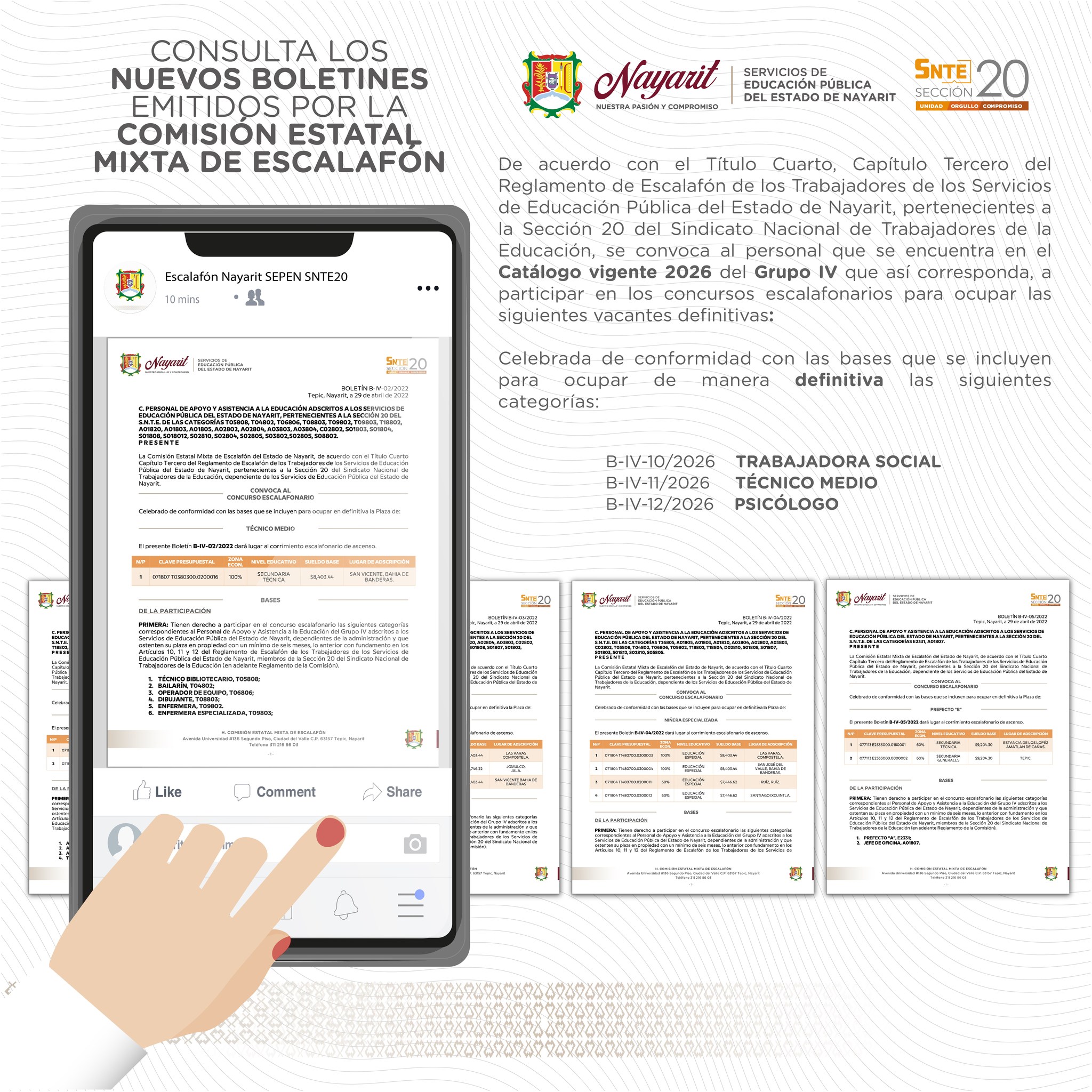 Consulta los nuevos boletines emitidos por la Comisión Estatal Mixta de Escalafón.