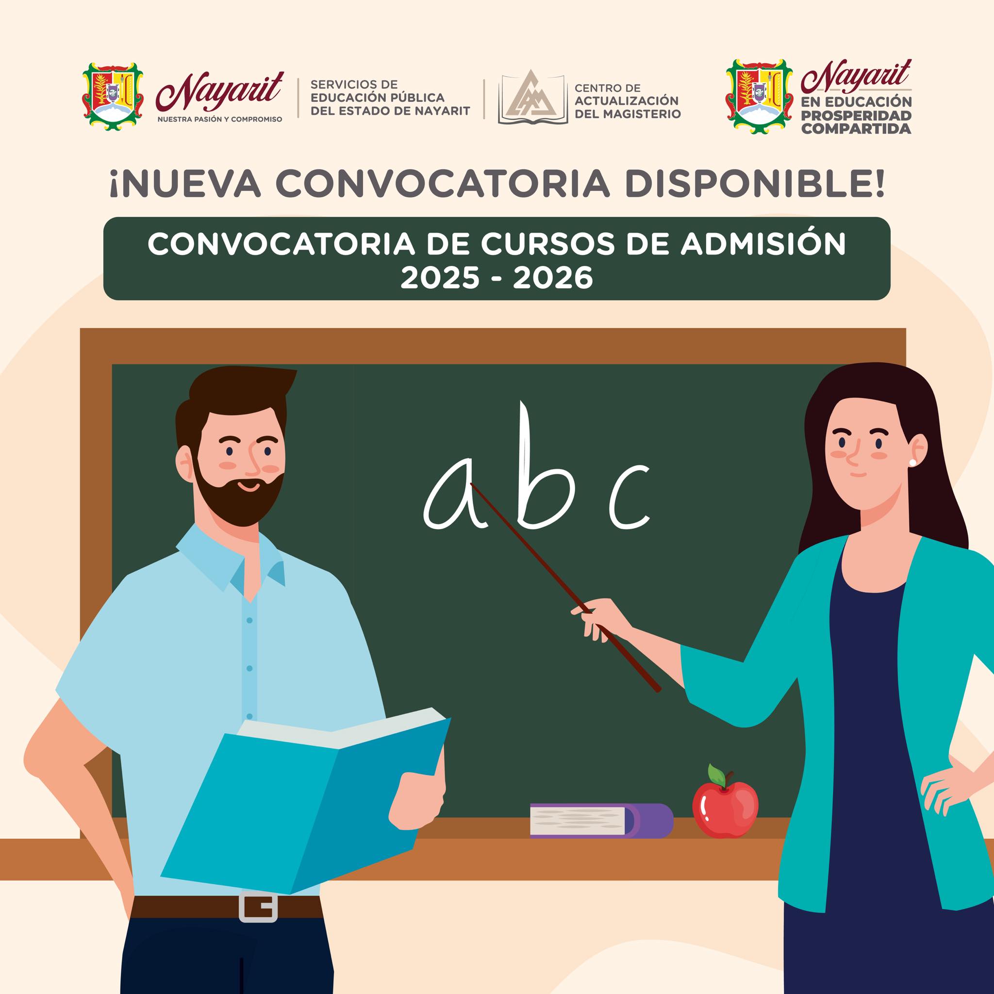 Con base en el Artículo 3o de la Constitución Política de los Estados Unidos Mexicanos, párrafo V que establece que las maestras y los maestros: “Tendrán derecho de acceder a un sistema integral de formación, de capacitación y de actualización”; así como en el Artículo 31 fracción II de la Ley General de Educación Superior, que plantea que las Instituciones Formadoras de Docentes deberán “Contribuir al fortalecimiento y la mejora continua de la educación básica y media superior para lograr la inclusión, equidad y excelencia educativa” y con la finalidad de atender la Estrategia 5.3.5 del Plan Estatal de Desarrollo de Nayarit 2021-2027: “Fomentar el desarrollo profesional permanente de las capacidades y competencias del personal docente y directivo”, los Servicios de Educación Pública del Estado de Nayarit, el Departamento de Instituciones Formadoras y Actualizadoras de Docentes, a través del Centro de Actualización del Magisterio convocan a las y los estudiantes egresados o por egresar de las Instituciones Formadoras y Actualizadoras de Docentes, con interés en participar en el proceso de nuevo ingreso al Sistema Educativo Nacional e inscribirse en un Curso Extracurricular de la siguiente: Oferta Educativa para Nuevo Ingreso 2025-2026.