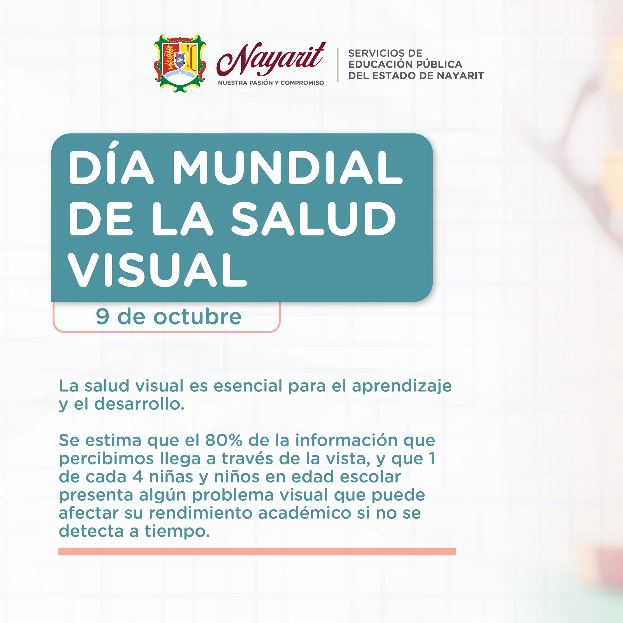 A través de la Estrategia Nacional Vive Saludable, Vive Feliz nos sumamos a la conmemoración del día mundial de la Salud Visual, sensibilizando a niñas, niños, padres y familias, sobre la importancia de cuidar y amar sus ojos con detecciones tempranas para identificar y tratar problemas de la vista en sus fases iniciales, mejorando su calidad de vida.