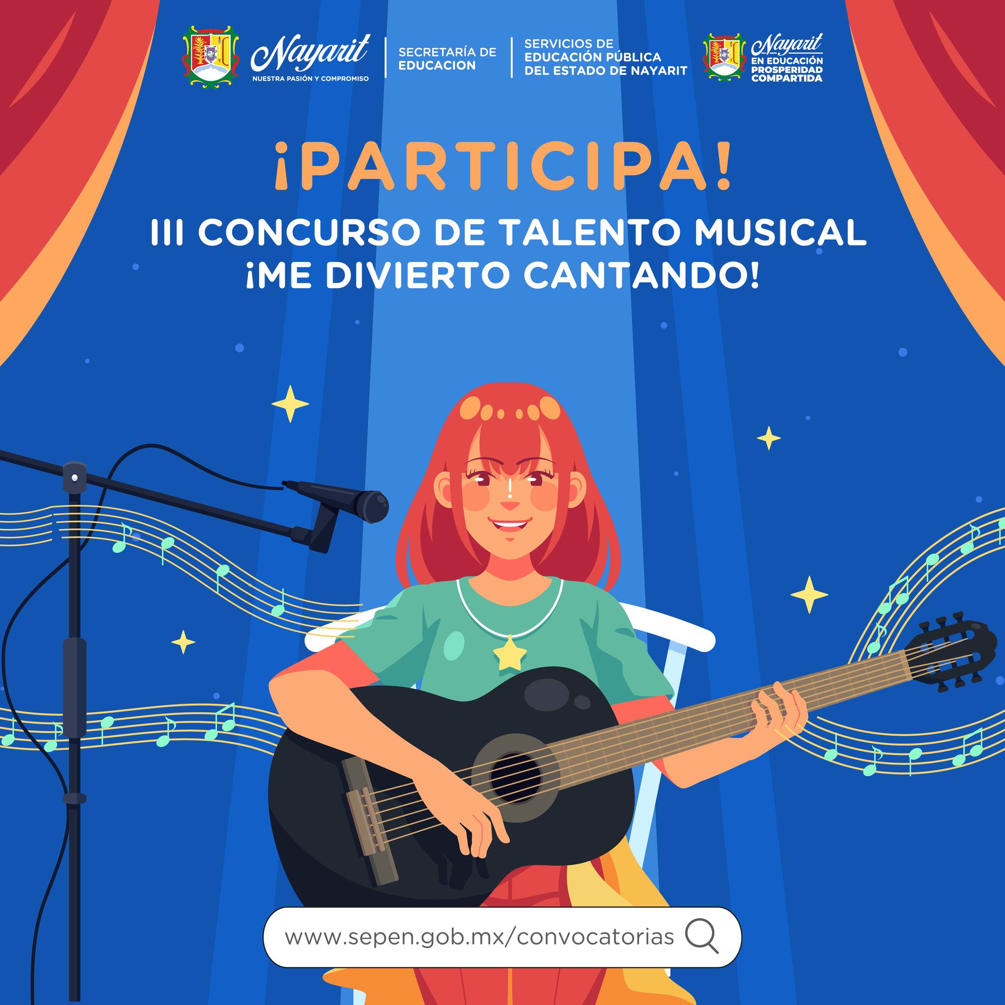 Con fundamento en el artículo 41 fracción V, VI, VII, VIII y IX del Reglamento Interior de los Servicios de Educación Pública del Estado de Nayarit, con la finalidad de proyectar valores artísticos y cívicos que contribuyan a la formación integral del alumno de educación básica como prioridad principal del Campo de Formación y Desarrollo Personal y para la Convivencia, en cumplimiento de los rasgos de normalidad mínima insertos en las cuatro prioridades educativas, la Secretaría de Educación y los Servicios de Educación Pública del Estado de Nayarit convocan al alumnado que curse los niveles de Primaria y Secundaria de escuelas públicas y privadas pertenecientes a la Secretaría de Educación y a los Servicios de Educación Pública del Estado de Nayarit, a participar en el III Concurso de Talento Musical "Me divierto cantando".