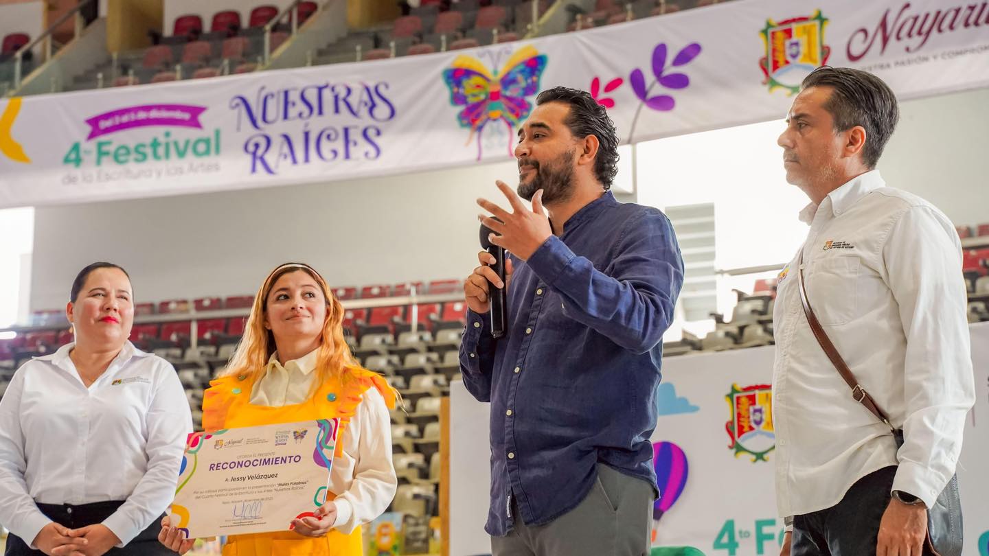 La primera presentación del 4to Festival de la Escritura y las Artes “Nuestras Raíces” estuvo a cargo del monólogo “Malas Palabras”, interpretado por Jessy Velázquez, quien ofreció una puesta en escena íntima y emotiva que conectó con el público a través de la palabra y la memoria. Su actuación destacó la fuerza narrativa del teatro como medio para reflexionar sobre la identidad y la infancia.