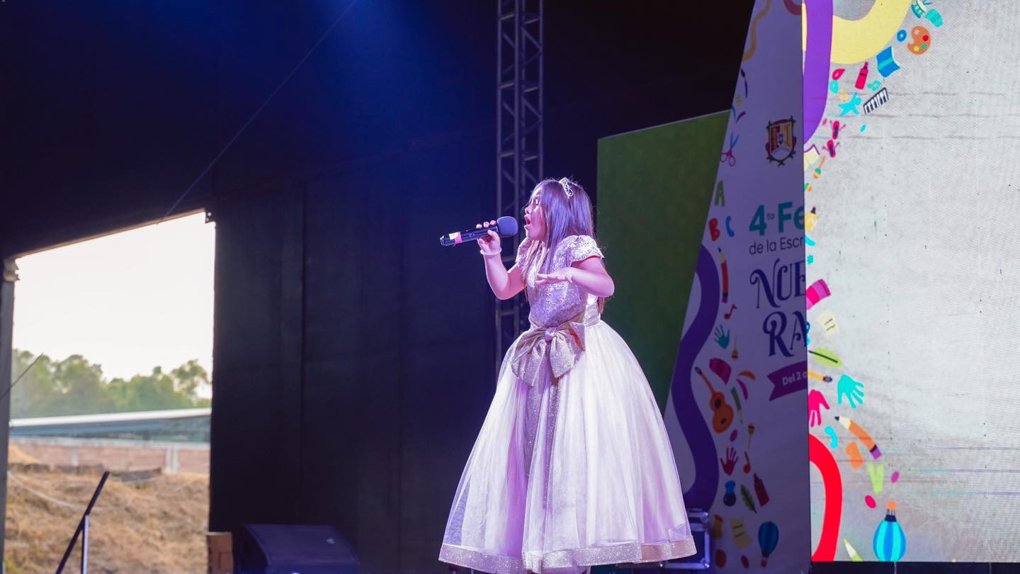 El escenario del festival fue sede de la gran final del concurso “Me Divierto Cantando”, donde niñas, niños y jóvenes demostraron su talento vocal y su entusiasmo por la música. Cada interpretación reflejó el esfuerzo y dedicación de las y los participantes.
