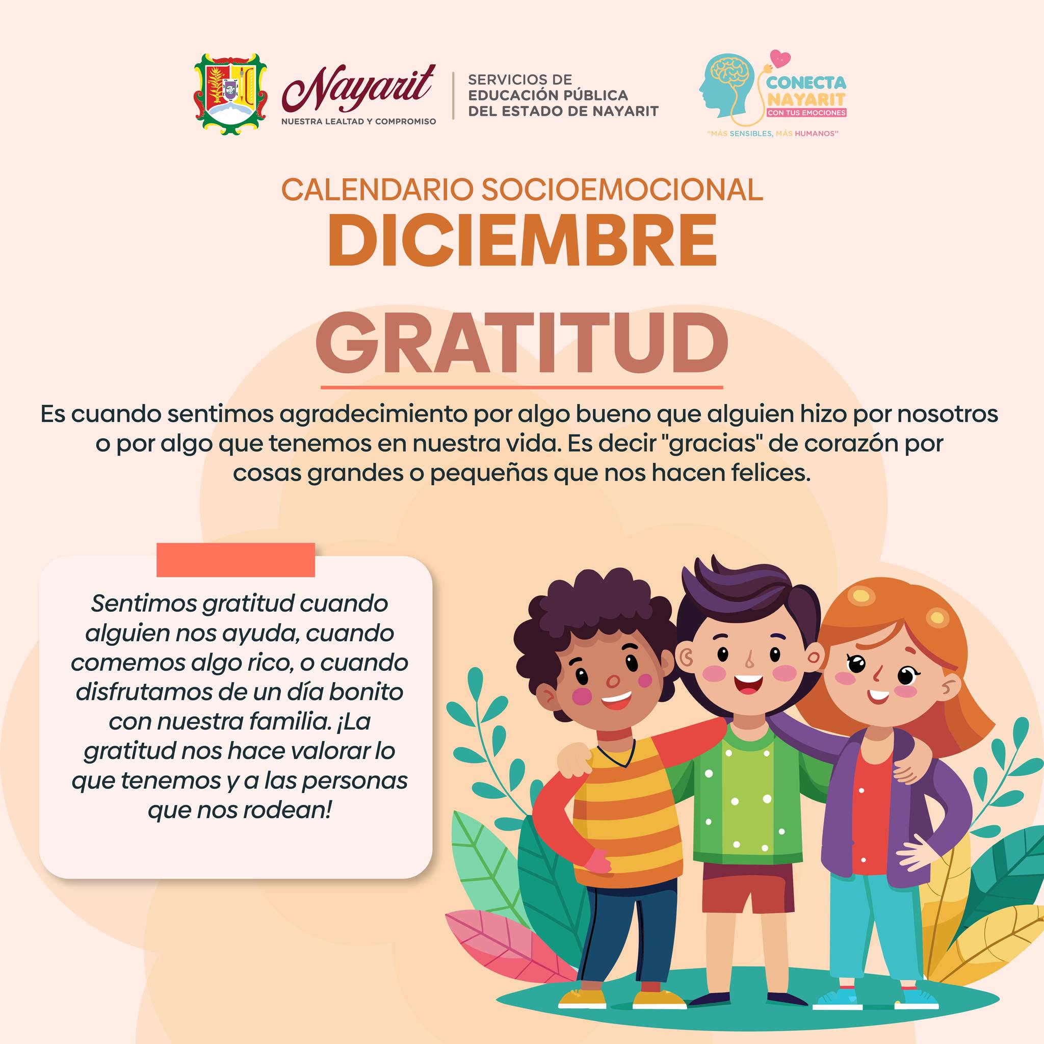 La Gratitud nos ayuda a reconocer y valorar lo bueno que llega a nuestra vida. En este mes, se fomenta agradecer de corazón por las personas y momentos que nos hacen sentir felices.