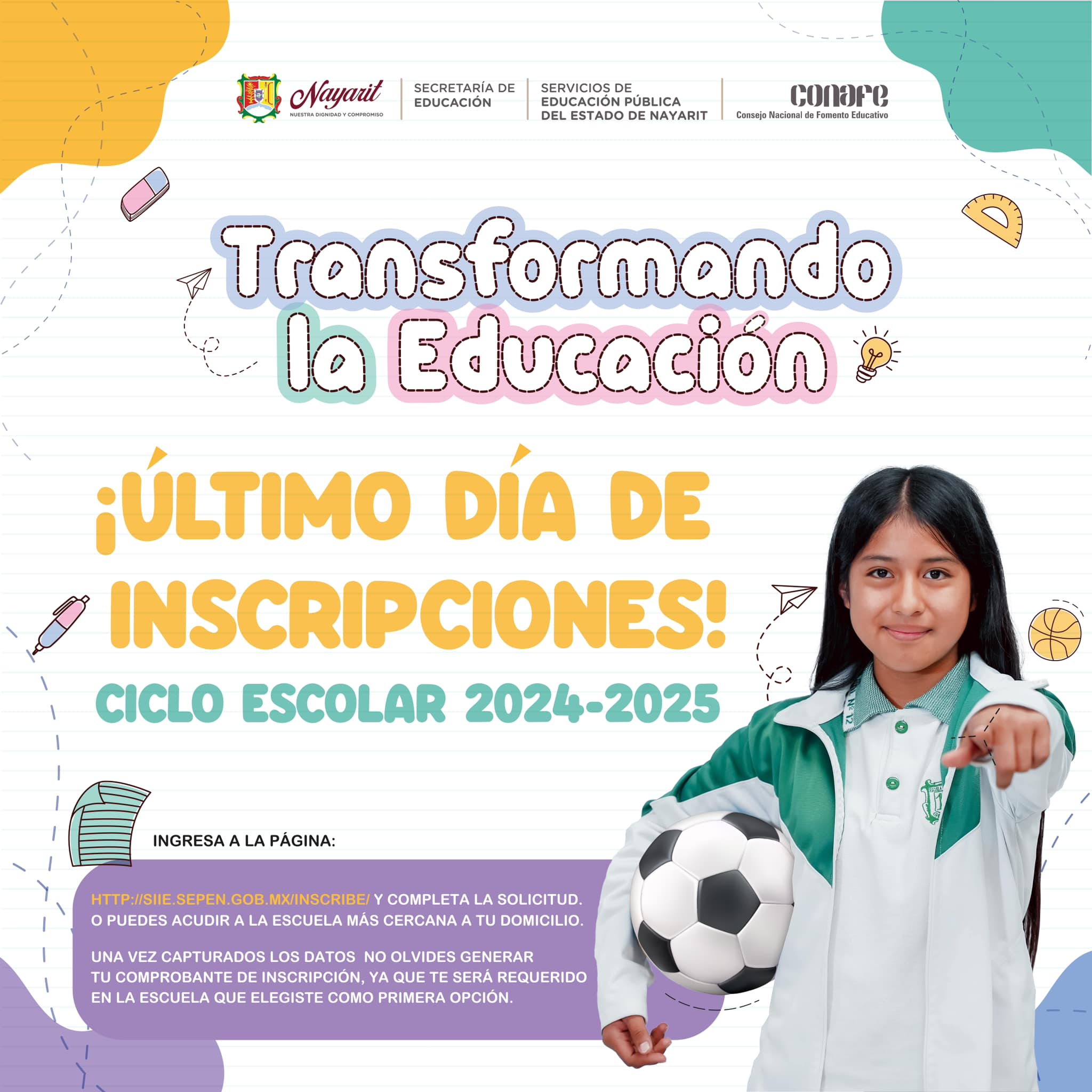 No dejes pasar la oportunidad de inscribirte para el ciclo escolar 2024-2025 si cursarás 1ro, 2do o 3ro de preescolar, 1ro de primaria o 1ro de secundaria. Ingresa al siguiente enlace: https://siie.sepen.gob.mx/inscribe/