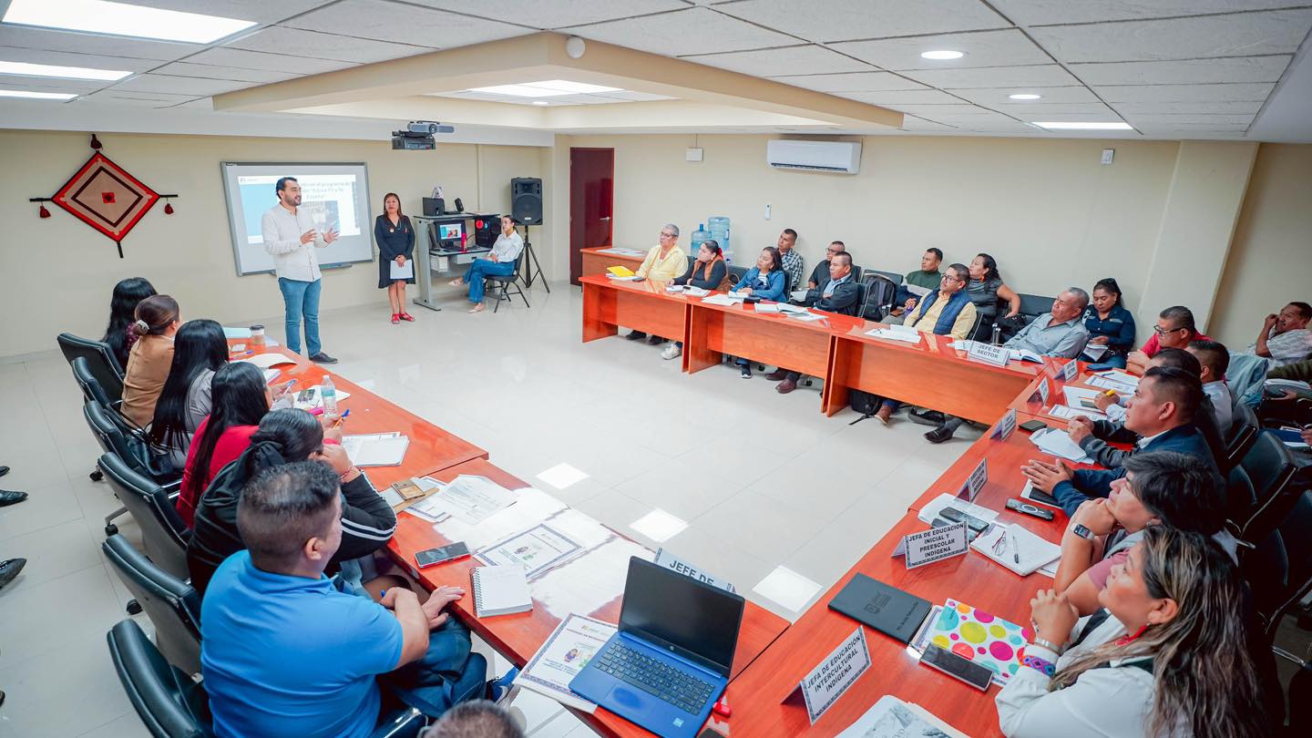 Con el propósito de fortalecer los procesos académicos del ciclo escolar, se llevó a cabo la reunión de construcción y fortalecimiento académico con Jefes de Sector, así como Supervisoras y Supervisores de Preescolar y Primaria Indígena. Este espacio permitió el análisis y seguimiento de las estrategias nacionales y locales que se implementan en los centros educativos.
