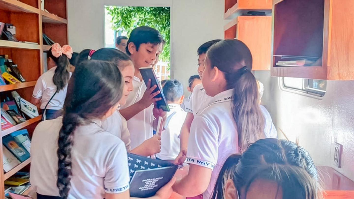 Durante la visita también se contó con la biblioteca móvil “El camino de los Palabristas”, acercando distintos materiales de lectura y promoviendo espacios para fortalecer la imaginación, la creatividad y el hábito lector dentro de la comunidad escolar.