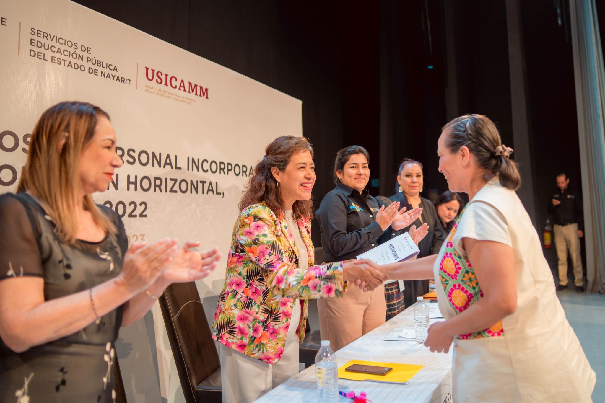 La directora general de los Servicios de Educación Pública del Estado de Nayarit (SEPEN), María Elizabeth López Blanco, agradeció a las autoridades federales por dignificar los procesos de la labor y reconocimiento docente, y destacó la vocación de las maestras y los maestros, por responder con corazón a la responsabilidad que asumen a favor del futuro de Nayarit.